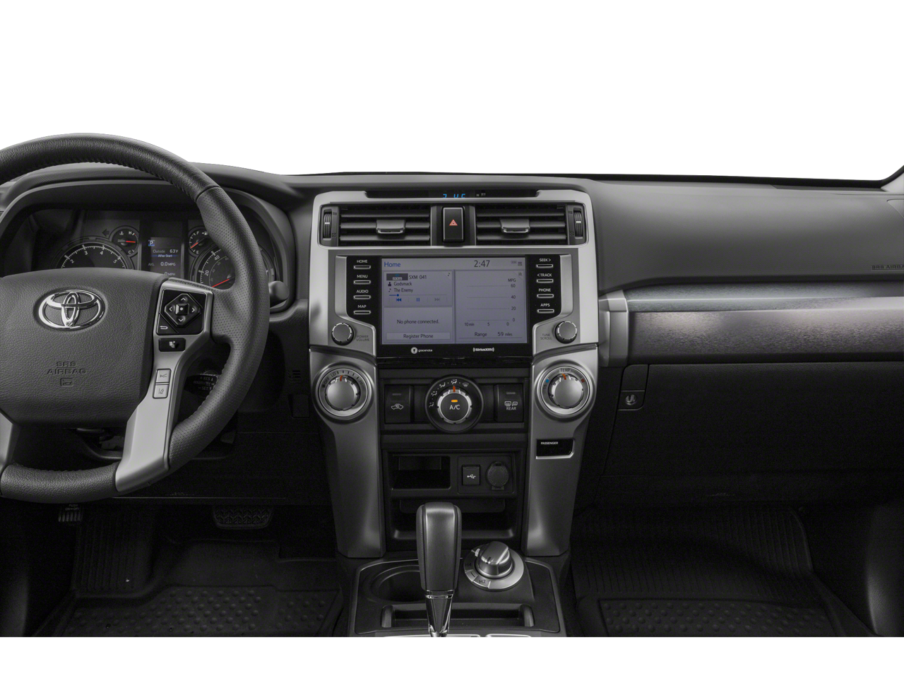 This 2020 Classic Silver Metallic Toyota 4Runner SR5 4WD is well equipped and includes these features and benefits: 4Runner SR5, 4D Sport Utility, 4.0L V6 SMPI DOHC, 5-Speed Automatic with Overdrive, 4WD, Black/Graphite w/Fabric Seat Trim, Fabric-Trimmed 50/50 Split Fold-Flat 3rd Row, Navigation System, Trunk Carpet, 17 x 7.0 6-Spoke Alloy Wheels, 3.727 Axle Ratio, 4-Wheel Disc Brakes, 8 Speakers, ABS brakes, Air Conditioning, Alloy wheels, AM/FM radio: SiriusXM, Anti-whiplash front head restraints, Apple CarPlay/Android Auto, Auto High-beam Headlights, Brake assist, Bumpers: body-color, Driver door bin, Driver vanity mirror, Dual front impact airbags, Dual front side impact airbags, Electronic Stability Control, Emergency communication system: Safety Connect with 1-year trial, Exterior Parking Camera Rear, Front anti-roll bar, Front Bucket Seats, Front Center Armrest, Front fog lights, Front reading lights, Front wheel independent suspension, Heated door mirrors, Illuminated entry, Knee airbag, Leather Shift Knob, Leather steering wheel, Low Fabric Seat Trim, Low tire pressure warning, Occupant sensing airbag, Outside temperature display, Overhead airbag, Overhead console, Panic alarm, Passenger door bin, Passenger vanity mirror, Power door mirrors, Power driver seat, Power steering, Power windows, Radio: Audio, Radio: Premium Audio w/Dynamic Navigation, Rear anti-roll bar, Rear seat center armrest, Rear window defroster, Rear window wiper, Remote keyless entry, Roof rack: rails only, Security system, Speed control, Speed-sensing steering, Split folding rear seat, Spoiler, Steering wheel mounted audio controls, Tachometer, Telescoping steering wheel, Tilt steering wheel, Traction control, Trip computer, and Variably intermittent wipers. 4Runner SR5, 4D Sport Utility, 4.0L V6 SMPI DOHC, 5-Speed Automatic with Overdrive, 4WD, Black/Graphite w/Fabric Seat Trim, Android Auto/Apple CarPlay, Bluetooth®, Backup Camera, Local Trade!, Tow Package, XM Radio, Fabric-Trimmed 50/50 Split Fold-Flat 3rd Row, Navigation System, Trunk Carpet.