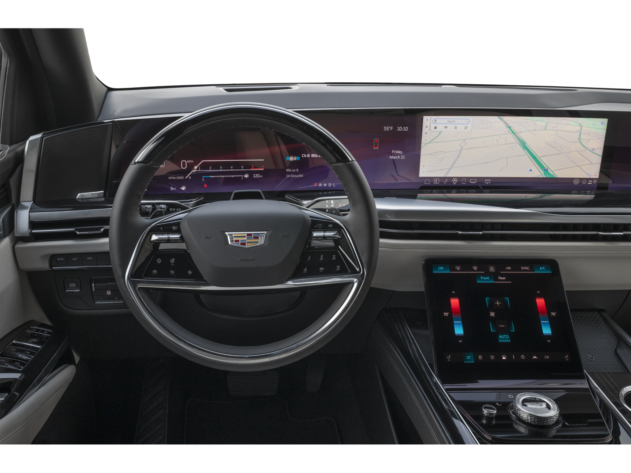 This 2025 Black Raven Cadillac Escalade Sport 4WD is well equipped and includes these features and benefits: Onyx Package (Black Illuminated Cadillac Emblem, Gloss Black Escalade Nameplate, and Puddle Lamps with Cadillac Crest), Preferred Equipment Group 1SC (2-Speed Active Transfer Case, AKG Studio 19-Speaker Audio System, Blind Zone Steering Assist with Trailering, Door Lock and Latch Shields, Electronic Limited-Slip Differential, Glass Breakage Sensor, Heated and Ventilated Driver and Front Passenger Seats, Hitch Guidance with Hitch View, Illuminating Front and Rear Sill Plates, Integrated Trailer Brake Controller, Magnetic Ride Control Suspension, Power Panoramic Tilt-Sliding Sunroof, Reconfigurable Full-Color Head-Up Display, Running Board Assist Steps, Smart Trailer Integration Indicator, Theft-Deterrent Alarm System, Trailering App, Trailering Assist Guidelines, Vehicle Inclination Sensor, Vehicle Interior Movement Sensor, Wheel Locks, and Wheels: 22 6-Spoke Polished Finish Alloy), 4WD, Jet Black Leather, 19 Speakers, 2-Presets Memory For Driver Seat Adjuster, 22 Forged Multi-Spoke Alloy Wheels, 3.23 Axle Ratio, 3rd row seats: split-bench, 4-Way Power Driver Lumbar Seat Adjuster, 4-Way Power Front Passenger Lumbar Seat Adjuster, 4-Wheel Disc Brakes, 8-Way Power Driver Seat Adjuster, 8-Way Power Front Passenger Seat Adjuster, ABS brakes, Adaptive suspension, Air Conditioning, Alloy wheels, AM/FM radio: SiriusXM with 360L, Apple CarPlay/Android Auto, Audio memory, Auto High-beam Headlights, Auto tilt-away steering wheel, Auto-dimming door mirrors, Auto-dimming Rear-View mirror, Automatic temperature control, Brake assist, Bumpers: body-color, Compass, Delay-off headlights, Driver door bin, Driver vanity mirror, Dual front impact airbags, Dual front side impact airbags, Electronic Stability Control, Emergency communication system: OnStar Services capable, Exterior Parking Camera Rear, Four wheel independent suspension, Front anti-roll bar, Front Bucket Seats, Front Center Armrest w/Storage, Front dual zone A/C, Front License Plate Bracket, Front reading lights, Fully automatic headlights, Garage door transmitter, Heads-Up Display, Heated door mirrors, Heated Driver and Front Passenger Seats, Heated front seats, Heated rear seats, Heated steering wheel, Illuminated entry, Knee airbag, Lane Departure Warning System, Leather Seating Surfaces with Precision Perforated Inserts, Low tire pressure warning, Memory seat, Navigation System, Occupant sensing airbag, Outside temperature display, Overhead airbag, Overhead console, Panic alarm, Passenger door bin, Passenger vanity mirror, Power door mirrors, Power driver seat, Power Liftgate, Power moonroof, Power passenger seat, Power steering, Power windows, Radio data system, Radio: Infotainment Experience, Rain sensing wipers, Rear air conditioning, Rear anti-roll bar, Rear reading lights, Rear window defroster, Rear window wiper, Remote keyless entry, Security system, SiriusXM with 360L Trial Subscription, Speed control, Split folding rear seat, Spoiler, Steering wheel memory, Steering wheel mounted audio controls, Tachometer, Telescoping steering wheel, Tilt steering wheel, Traction control, Trip computer, Turn signal indicator mirrors, Variably intermittent wipers, Ventilated front seats, Voltmeter, Wheels: 22 Interim, and Wireless Apple CarPlay/Wireless Android Auto. 4WD, Jet Black Leather.